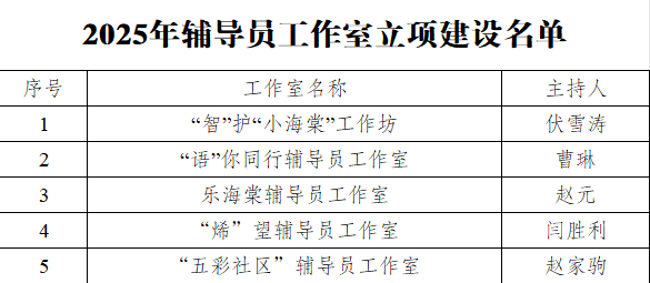 根据《关于开展2025年辅导员工作室申报建设工作的通知》的要求,经个人申报、学院推荐、现场答辩等程序,5个工作室入选2025年辅导员工作室立项建设名单。现将结果予以公示,具体名单如下: