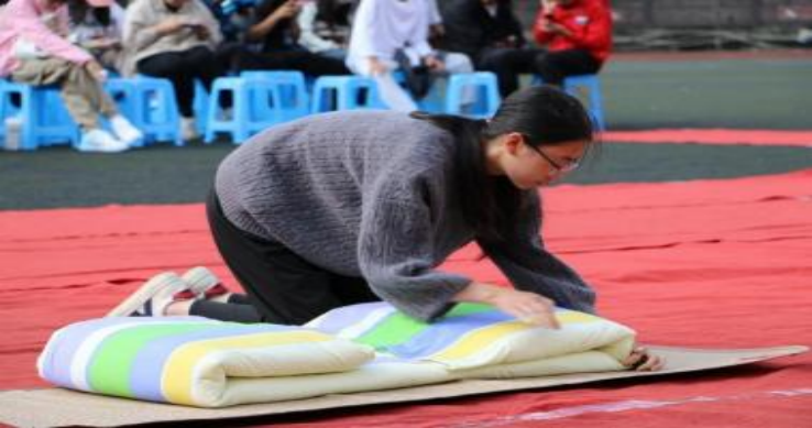 本网讯(文/袁艺 图/袁艺 冯奕淼)为进一步丰富学生校园文化生活,塑造舒适的宿舍环境,营造浓厚劳动育人氛围,培养同学们日常劳动生活习惯和能力,充分展示我校2023级新生的风采,10月29日下午,公寓民主委员会在南操场举行了以“内务整理‘宿’新风,劳动教育展风采”为主题的劳动教育校园文化活动——叠军被大赛决赛。出席本次活动的有党委学生工作部、学校劳动教育中心相关负责老师和23级参赛学生及军训教官孙健萍、张玉如、李鑫、赵家未、王天戈、黄焱。