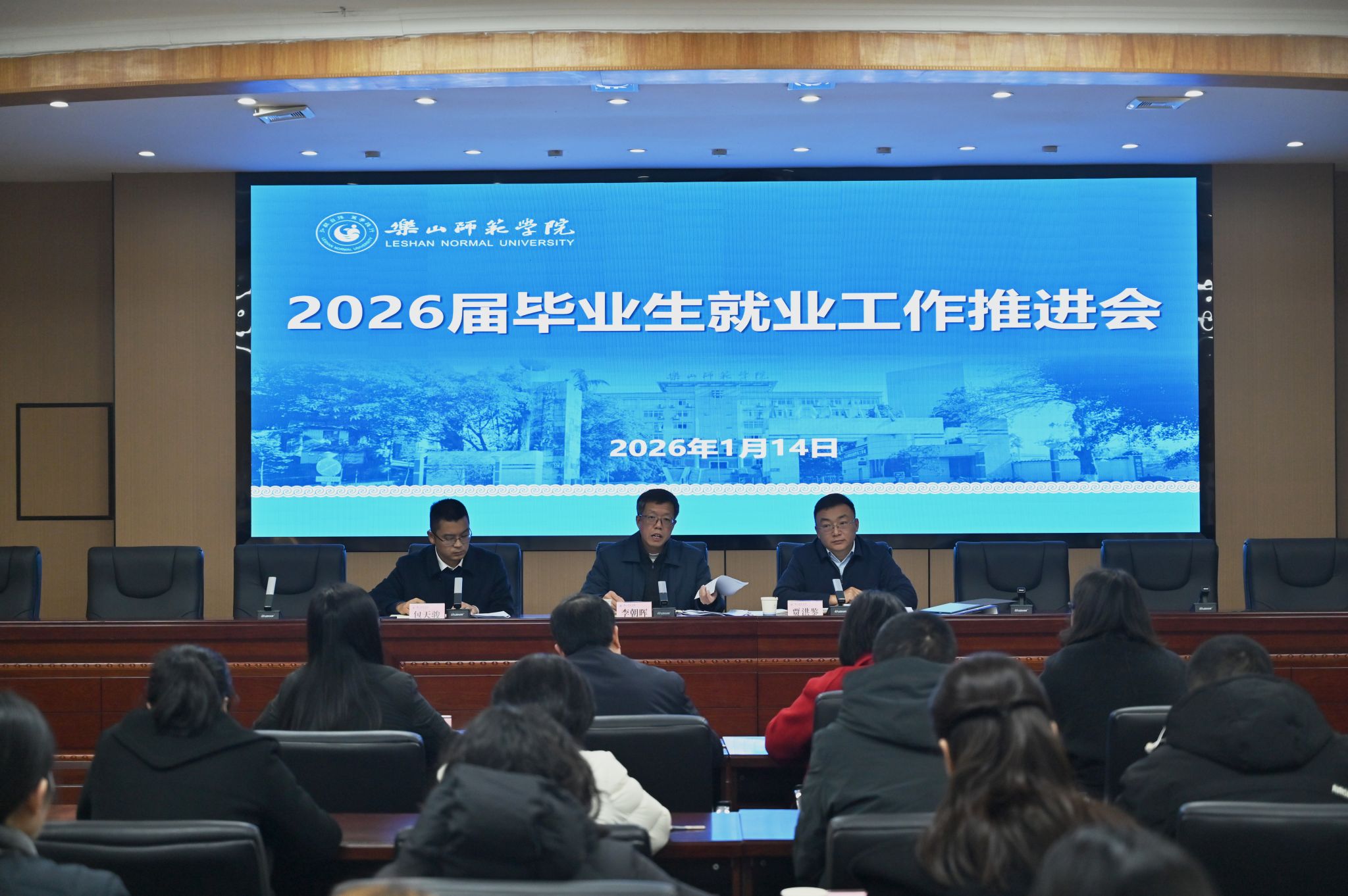 本网讯(文图/廖盛荣)为深入贯彻落实《教育部关于做好2026届全国普通高校毕业生就业创业工作的通知》精神,扎实推进学校2026届毕业生就业工作,1月14日下午,学校在弘毅楼第一会议室召开2026届毕业生就业工作推进会。党委常委、副校长、工会主席李朝晖主持会议并讲话。招生与就业处、创新创业学院、校团委、武装保卫部相关负责人,各教学院党委副书记及2026届毕业班辅导员参加会议。