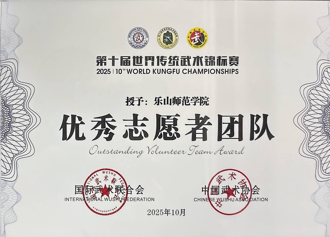 本网讯(文/曹琳、陈玉娇 图/马锦雯、杨祖凤、杨诗雨)10月16日至19日,第十届世界传统武术锦标赛在峨眉山隆重举行。外国语学院精心选拔的72名具备优秀英语、日语、法语沟通能力的学生志愿者,以卓越的专业素养和饱满的精神状态全程参与赛事服务,其出色的跨文化沟通能力和高度负责的敬业精神,赢得了国际武术联合会、赛事组委会以及来自54个国家和地区运动员代表团的一致高度赞誉,被授予“优秀志愿者团队”称号。