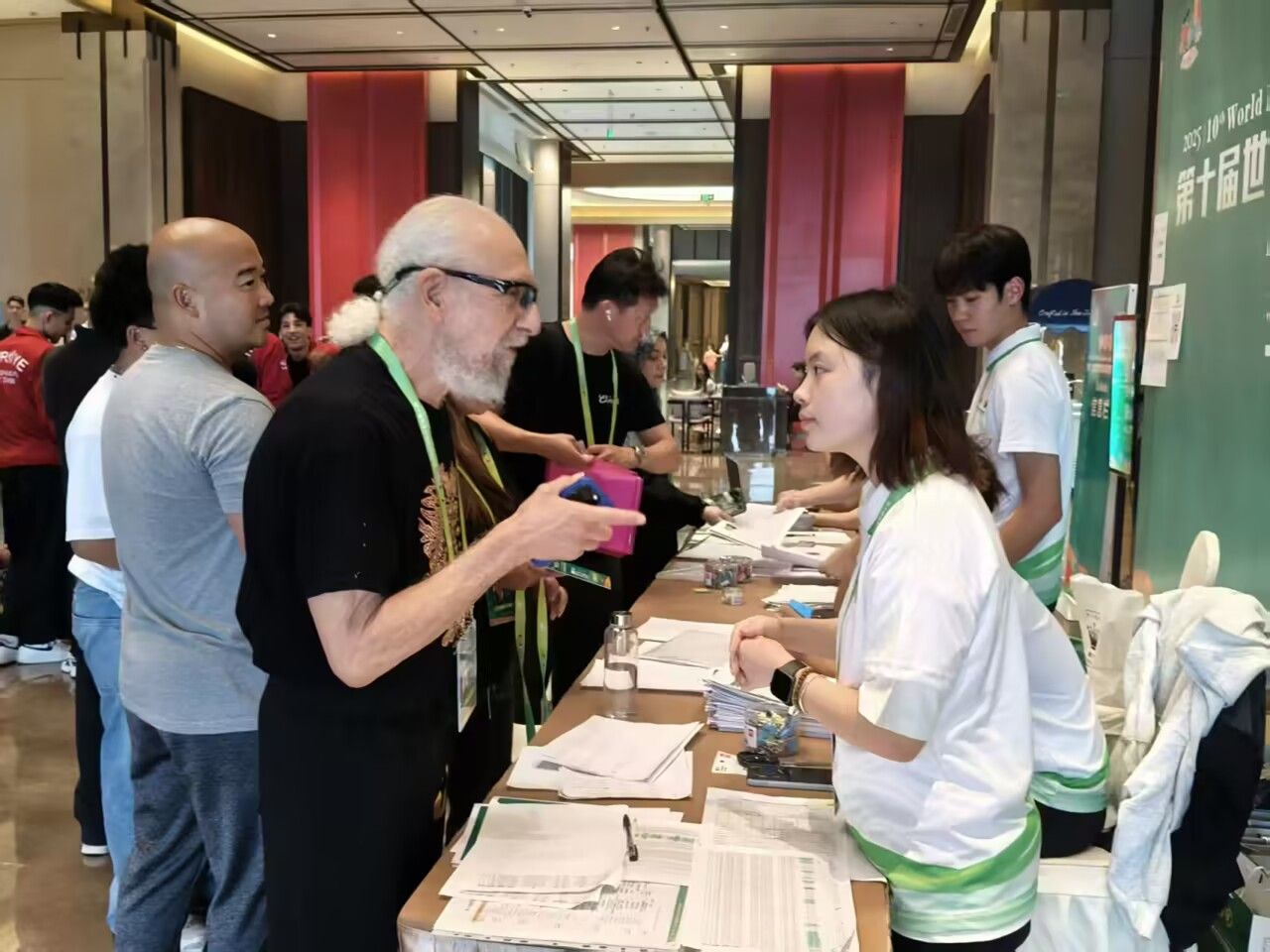 本届锦标赛以“慧定峨眉·武动世界”为主题,规模盛大,吸引了全球5092名运动员同台竞技,是对志愿者专业能力,尤其是语言应用与跨文化交际水平的一次全面检验。面对繁杂的赛事组织工作,外国语学院志愿者在学院前期针对性培训与全程保障支持下,在外籍代表团注册报到、酒店接待、交通引导、赛事信息咨询等关键岗位,熟练运用多语种能力,精准高效地协助完成护照查验、报名材料审核、手续办理等一系列工作,确保了外籍参赛团队抵达与赛前准备环节的顺畅无阻。