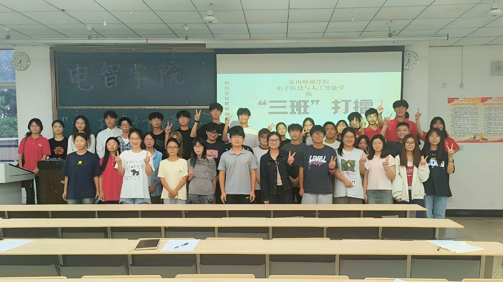 本网讯(文、图/唐根斌)为增强班级凝聚力、加强班级文化建设,10月16日下午,电子信息与人工智能学院在行知楼101开展“三班打擂”活动,本次活动由AI引航辅导员工作室和学生分会联合主办。辅导员肖苗、王杰、徐星悦、狄红霞,班主任代表,主席团成员、新生代班及大一全体学生参与。
