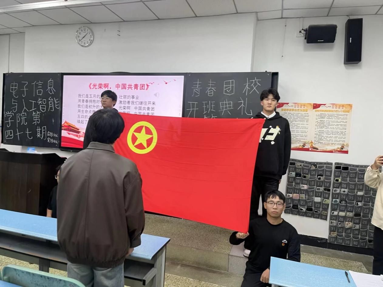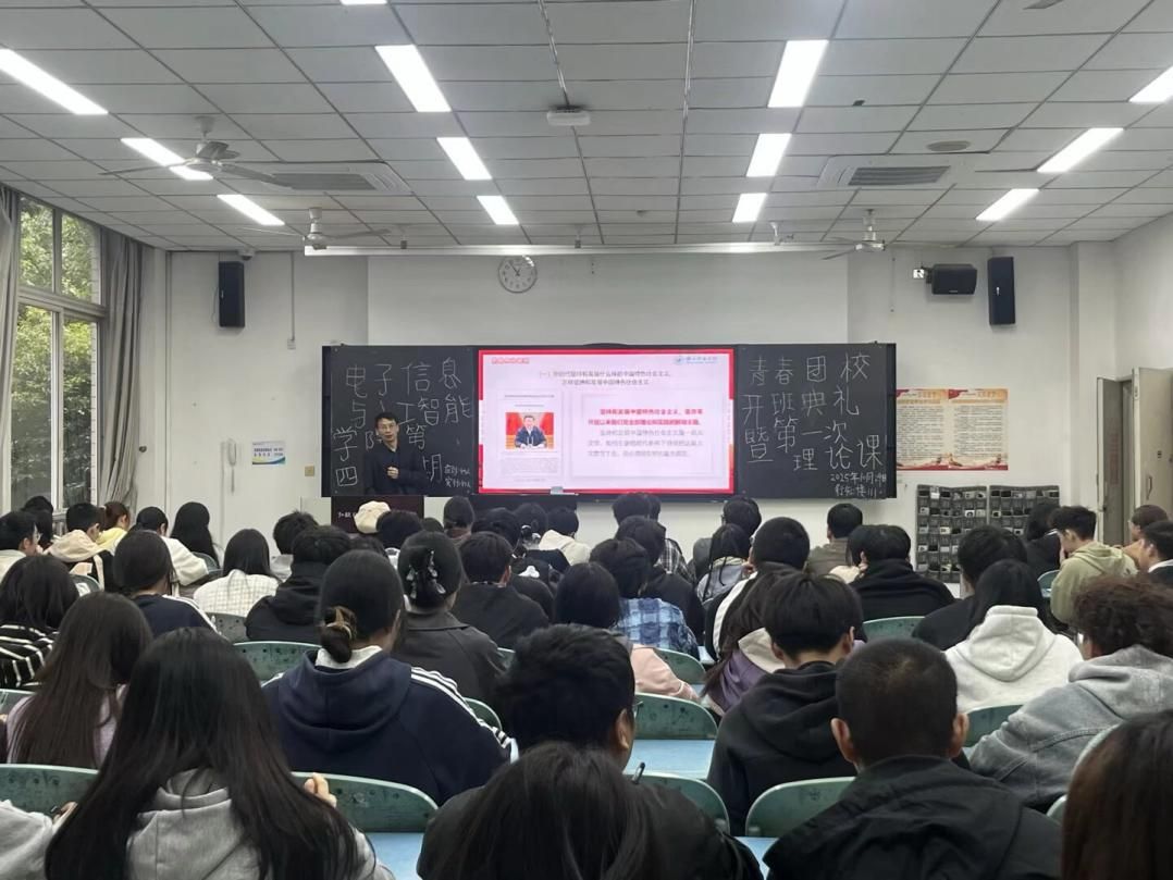 本网讯(文/胡晨希 图/刘谨豪)为进一步巩固和规范团员教育管理,健全学院共青团思想政治引领工作机制,10月24日中午12时40分,电子信息与人工智能学院在行知楼111教室举办第47期青春团校开班典礼暨第一次理论课。本次活动由学院AI引航辅导员工作室与分团委组织部联合主办,学院党委书记蒋强,辅导员肖苗、狄红霞、王杰、徐星悦,分团委副书记孔一鸣、邓钫、曹诗敏、郭爱铭及全体团校学员参加,分团委组织部副部长邓钰主持活动。