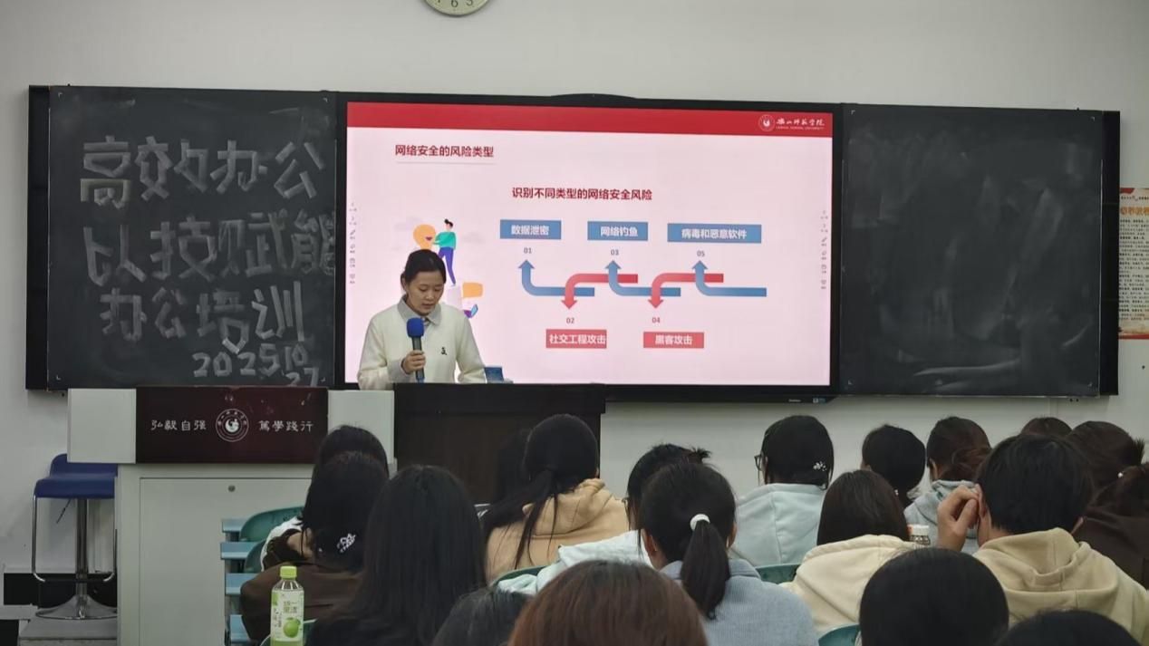 核心授课环节,主讲老师何婧以信息安全与隐私保护为主题进行授课。本次内容涵盖以下五个方面:第一,网络安全基础,讲解定义、重要性及常见威胁,筑牢理论根基。第二,密码安全管理,通过案例解析,传授强密码设置与管理工具使用技巧。第三,安全浏览指南,分享识别钓鱼网站、使用安全插件与定期更新系统的方法。第四,流氓软件与广告防范,剖析危害,介绍正版杀软使用与广告屏蔽技巧。第五,网络社交安全,结合实例讲解隐私保护与诈骗识别要点。最后,主持人进行总结并组织学员合影留念,为本次培训画上圆满句号。