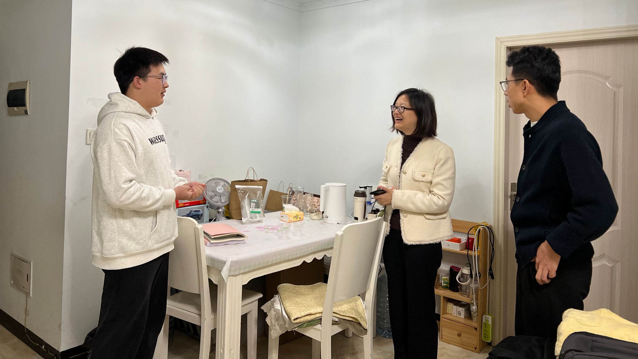 走访过程中,老师们详细了解了学生校外住宿期间的安全事项、日常生活以及学习安排等情况。针对学生普遍关注的考研复习问题,方丽结合自身经验,为学生提供了实用的备考建议,鼓励大家坚定信心、科学规划,以良好的状态迎接考试。宋军着重强调了消防安全、人身安全、交通安全及财产安全的重要性,提醒学生增强安全防范意识,严格遵守校规校纪及校外住宿管理规定,确保人身与财产安全不受侵害。辅导员老师表示将随时为学生提供必要的帮助与支持。学生们对学院领导的关心表示感谢,并承诺将牢记教导,严格遵守各项规定,努力学习,不负期望。