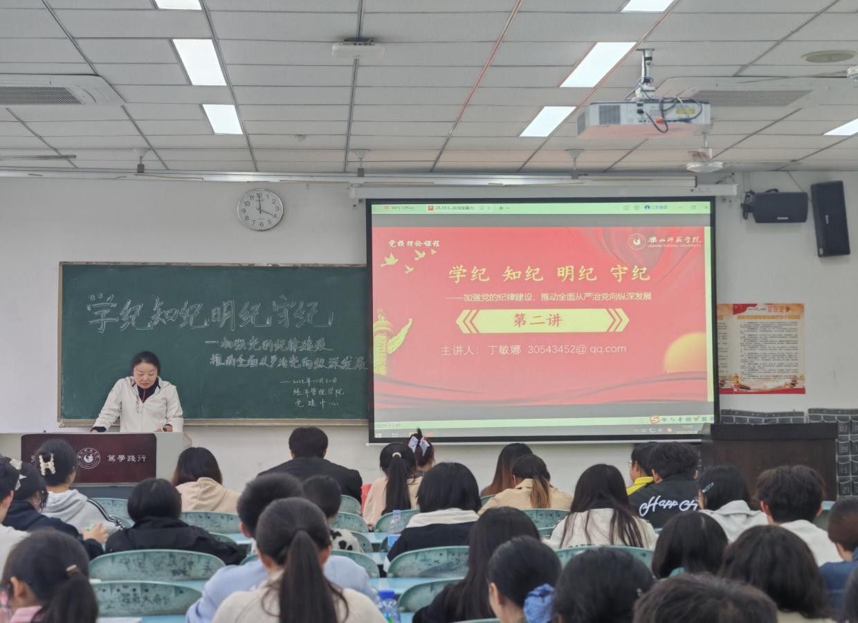 图1 学院党委副书记丁敏娜开展“学纪,知纪,明纪,守纪”专题培训