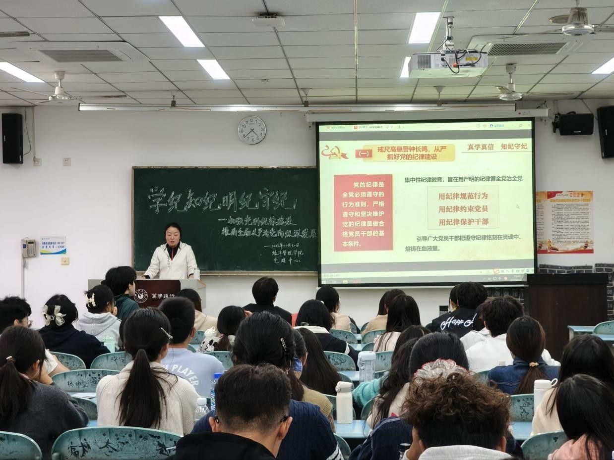 本网讯(图、文/谢慧)10月30日,经济管理学院分党校在行知楼310举办以“学纪、知纪、明纪、守纪”为主题的入党积极分子和发展对象专题培训。本次培训由学院党委副书记丁敏娜主讲,第52期入党积极分子与2025年下半年发展对象全体参加。