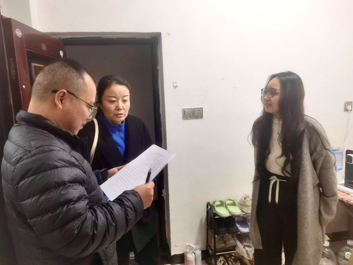 走访过程中,各小组重点排查校外住宿场所消防安全、用电安全、财产安全及周边环境安全等风险隐患,规范完成走访登记、问题记录及情况留存工作,对发现的安全隐患及时告知并督促限期整改。同时,各小组深入了解学生学习状态、生活情况及实际困难,开展思想引导与日常教育,同步进行安全警示教育与风险提示。