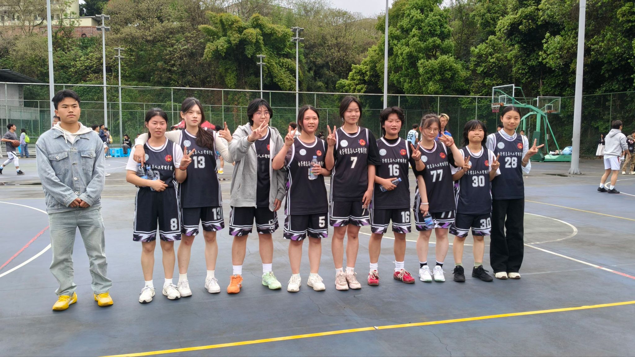 哨声响起,比赛正式拉开帷幕。电智学院队员身手敏捷,凭借默契配合发起犀利快攻,精准投篮尽显团队协作力;文史学院队员沉着应战,以严密防守稳住阵脚,抓住机会果断反击,双方比分交替攀升,赛场气氛热烈紧张。比赛开局双方激烈对抗,比分交替上升。赛场上,队员们全力以赴、奋勇拼搏,抢断、盖帽、上篮等精彩操作轮番上演,每一次得分都引得观赛师生阵阵欢呼。