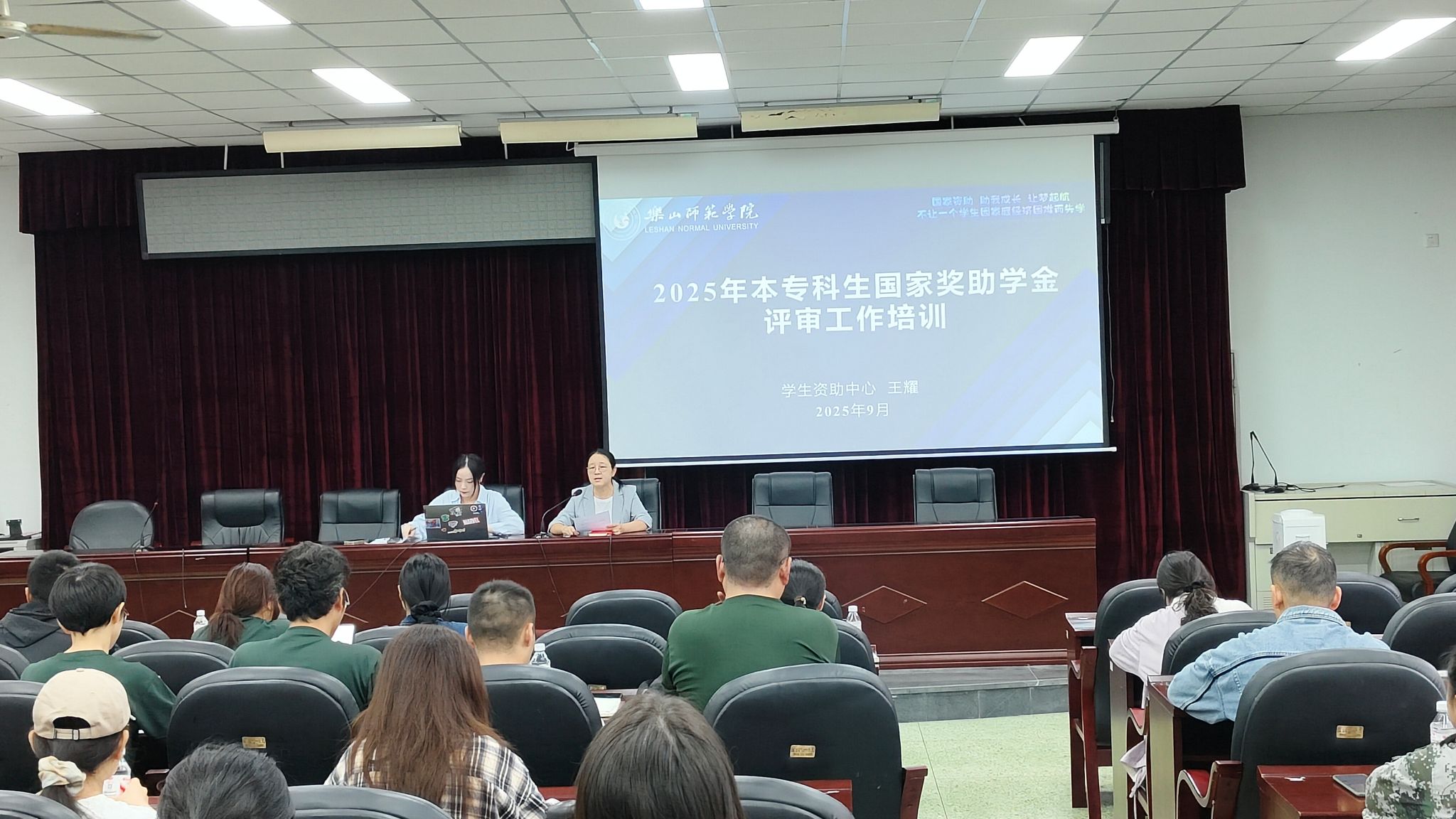 本网讯(文/谢星月 图/李玲)9月26日上午,党委学生工作部学生资助中心在弘毅楼412教室组织召开2025年国家奖助学金评审工作培训会。党委学生工作部副部长肖露欣、学生资助中心主任王耀、全体辅导员等50余人参加本次培训。