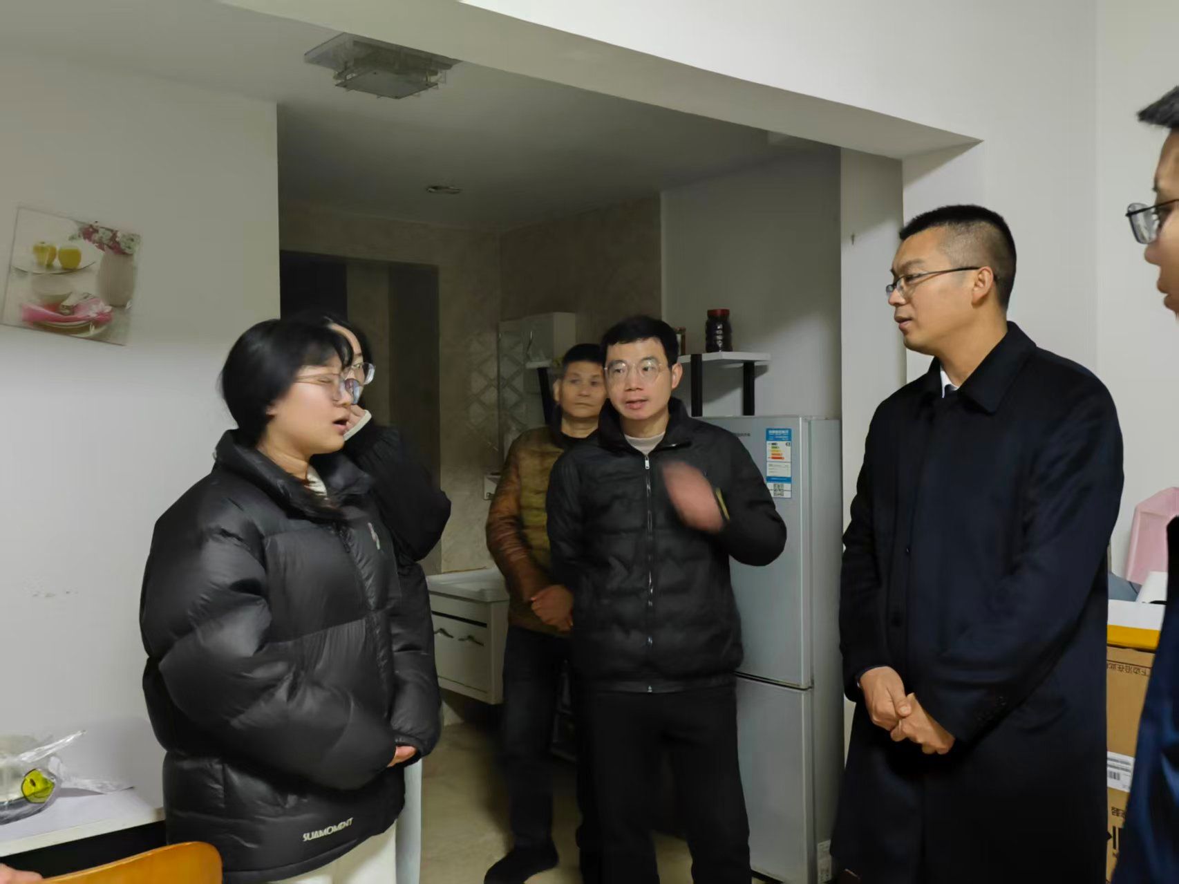 走访中,包天骏、罗智勇与同学们围坐交流,关切询问生活与学业状况。“复习进度如何?生活上有没有困难?”“晚上出行尽量结伴,注意安全。”“冬季用电增多,一定要规范使用,人走电断。”声声叮嘱,拉近了师生距离,也筑牢了安全心防。面对考研学子,工作组仔细了解复习节奏、心理状态与具体需求,鼓励大家坚定目标、劳逸结合,并介绍了学校心理咨询、学业帮扶等支持资源,让学生倍感安心。对于其他外住同学,工作组认真听取居住适应、通勤便利等方面的反馈,嘱咐大家与学院保持联系,有困难及时反映。“没想到学校一次次来走访,老师不仅查安全,还认真听我们说话,感觉一直被惦记着,很温暖。”一名住在青年广场的备考学生感慨道。