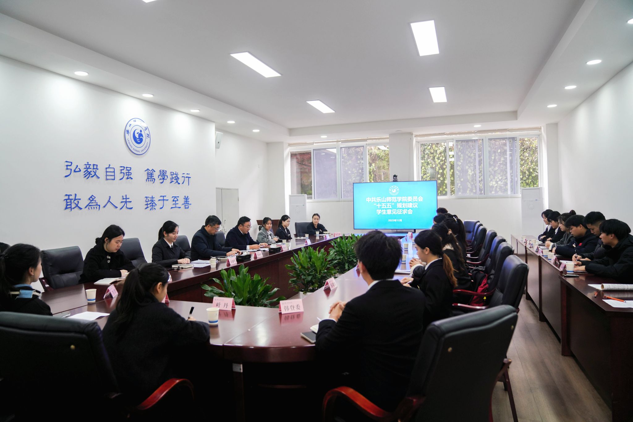 本网讯(文/周宏宇 图/曾仁丽)12月12日,学校在弘毅楼211A会议室召开中共乐山师范学院委员会“十五五”规划建议学生意见征求会。党委常委、副校长李朝晖,党委学生工作部部长贾洪鉴,校团委书记翟雅媛出席会议并与21名学生代表展开交流。