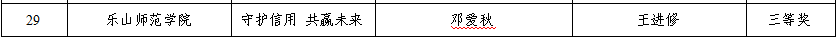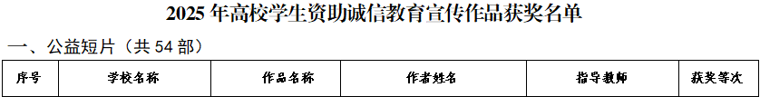 2025年的诚信教育主题活动由四川省教育厅和中国人民银行四川省分行联合组织,旨在通过加强对受助学生的诚信教育、感恩教育、励志教育,深入推进资助育人,增强当代大学生的诚信意识和责任担当。本次活动全省共有54部公益短片、66幅公益宣传画和64幅书法作品获奖。其中,我校由李骏、肖苗老师指导,白雨阳创作的公益短片《守诚助学 青春汇彩》获二等奖;由王进修老师指导,邓爱秋创作的公益宣传画《守护信用 共赢未来》获三等奖;由陈弟伦老师指导,刘沛创作的书法作品《诚信楹联》获优秀奖。