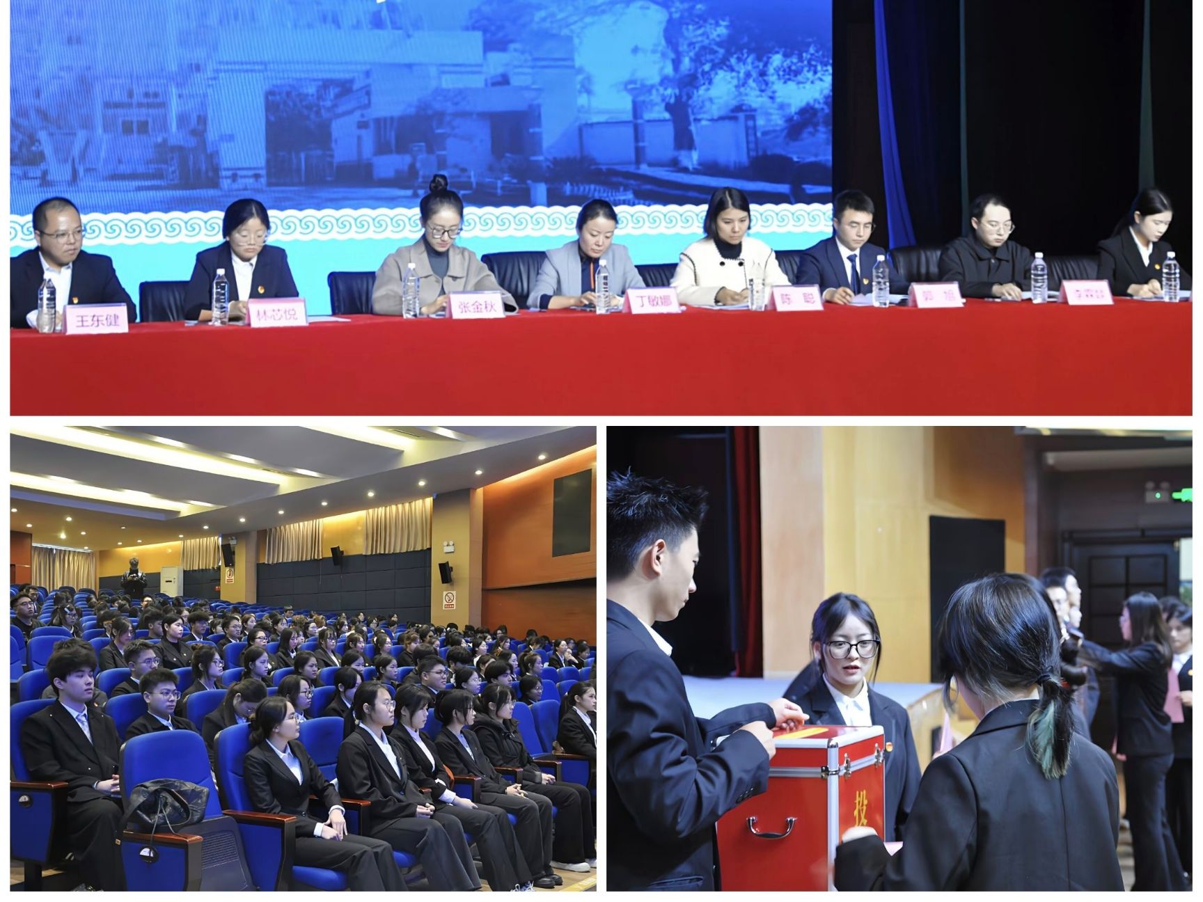 随后,丁敏娜副书记发表讲话。她首先充分肯定了上一届团学干部取得的显著成绩,并向新当选的团学干部表示祝贺,鼓励大家继续努力,争取更优异的成绩。同时,她围绕“争做新时代好青年”主题,从“提高思想政治素质、坚定理想信念”“努力学好专业知识、提升专业技能”“加强实践锻炼、促进全面发展”三个方面对学生干部提出要求。她强调,班团组织要抓好学生的思想教育引导,助力大家坚定政治立场、树立远大理想。学习与工作中,要注重课堂知识实践转化,通过专业实践提升技能水平。此外,她建议团学组织多开展社会实践与积极向上的文娱活动,同时鼓励同学们积极参加体育锻炼,培养至少一项体育爱好。最后,她希望广大学生干部不断提升自我管理能力,实现全面发展,充分发挥先锋模范作用。