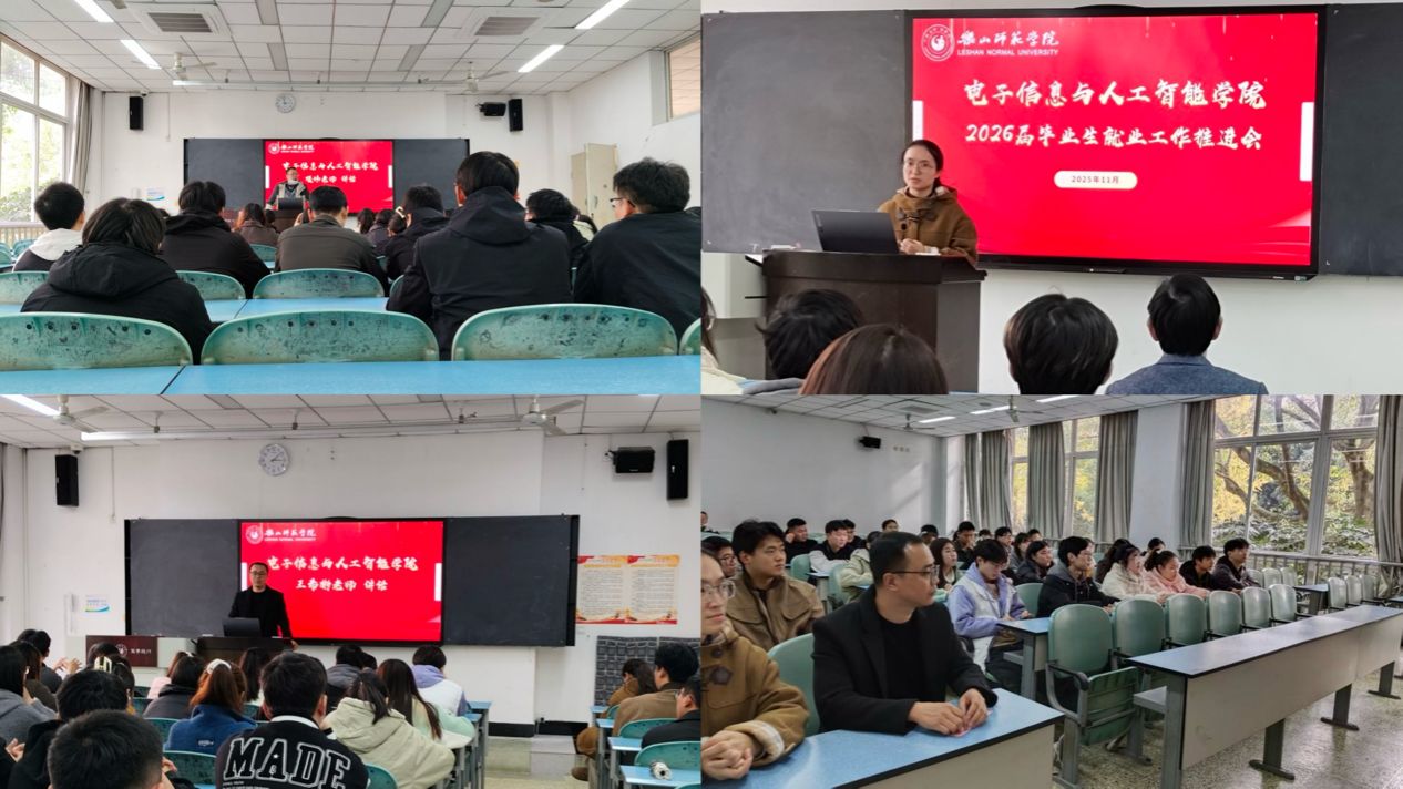 本网讯(文/覃玲玲 图/张天意)为精准对接专业特色与行业发展需求,聚焦毕业生就业痛点难点,全面提升就业质量与满意度,11月20日,电子信息与人工智能学院在行知楼111以“线上+线下”结合的形式召开2026届毕业生就业工作推进会。本次会议由AI引航辅导员工作室主办,学院院长金澎、党委副书记李骏、副教授项炜、辅导员肖苗、助教王希彬及2026届全体毕业生参会。