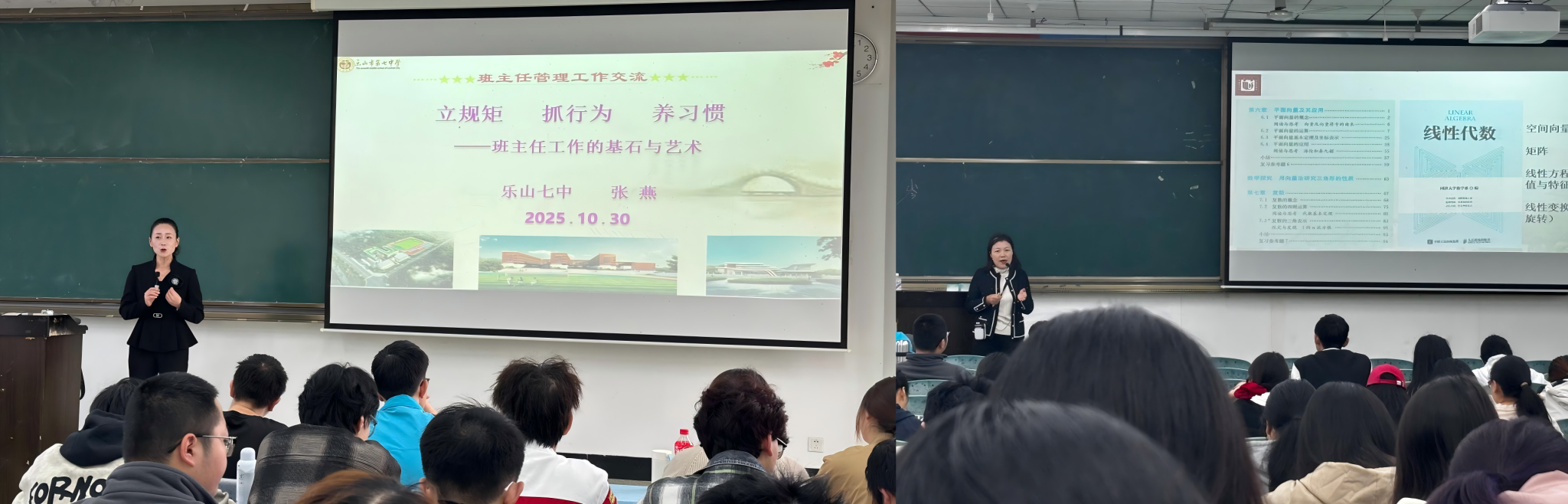 数理大讲堂邀请乐山第七中学张燕老师与乐山第一中学岑雪莲老师开展专题讲座,分享数理思维在教育中的应用,加深了学生对数理文化的理论认知。