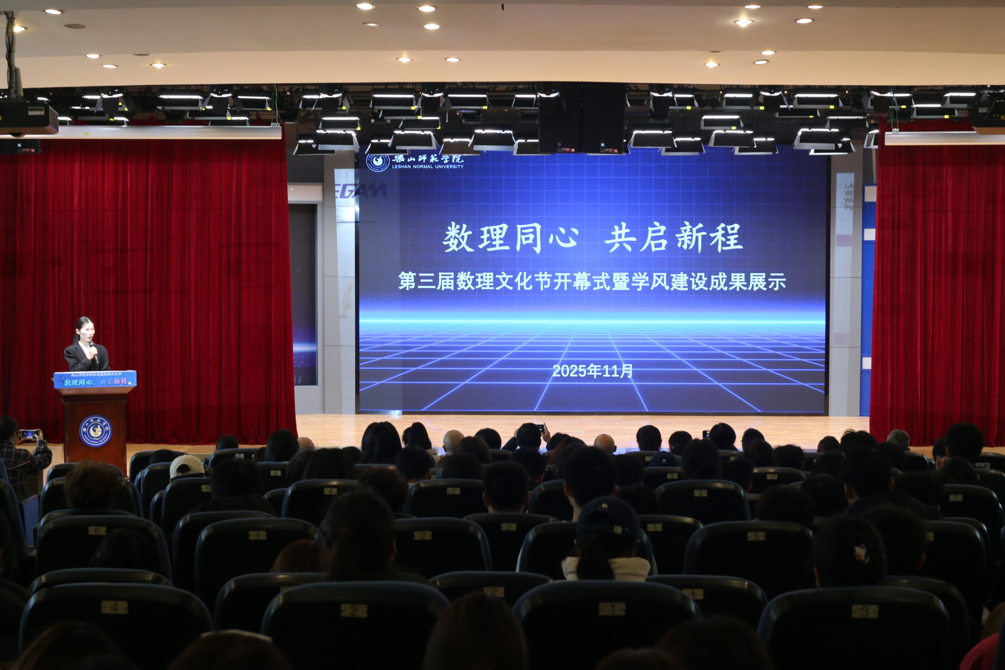 本网讯(文/李佳莉 图/传媒中心)11月27日,数学与统计学院、物理与光电工程学院联合举办的第三届数理文化节圆满落下帷幕。本届文化节以“数理同心,共启新程”为主题,通过内场开幕仪式与外场互动体验相结合的方式,充分展现了数理学科的独特魅力,实现了学风建设与文化育人的深度融合。