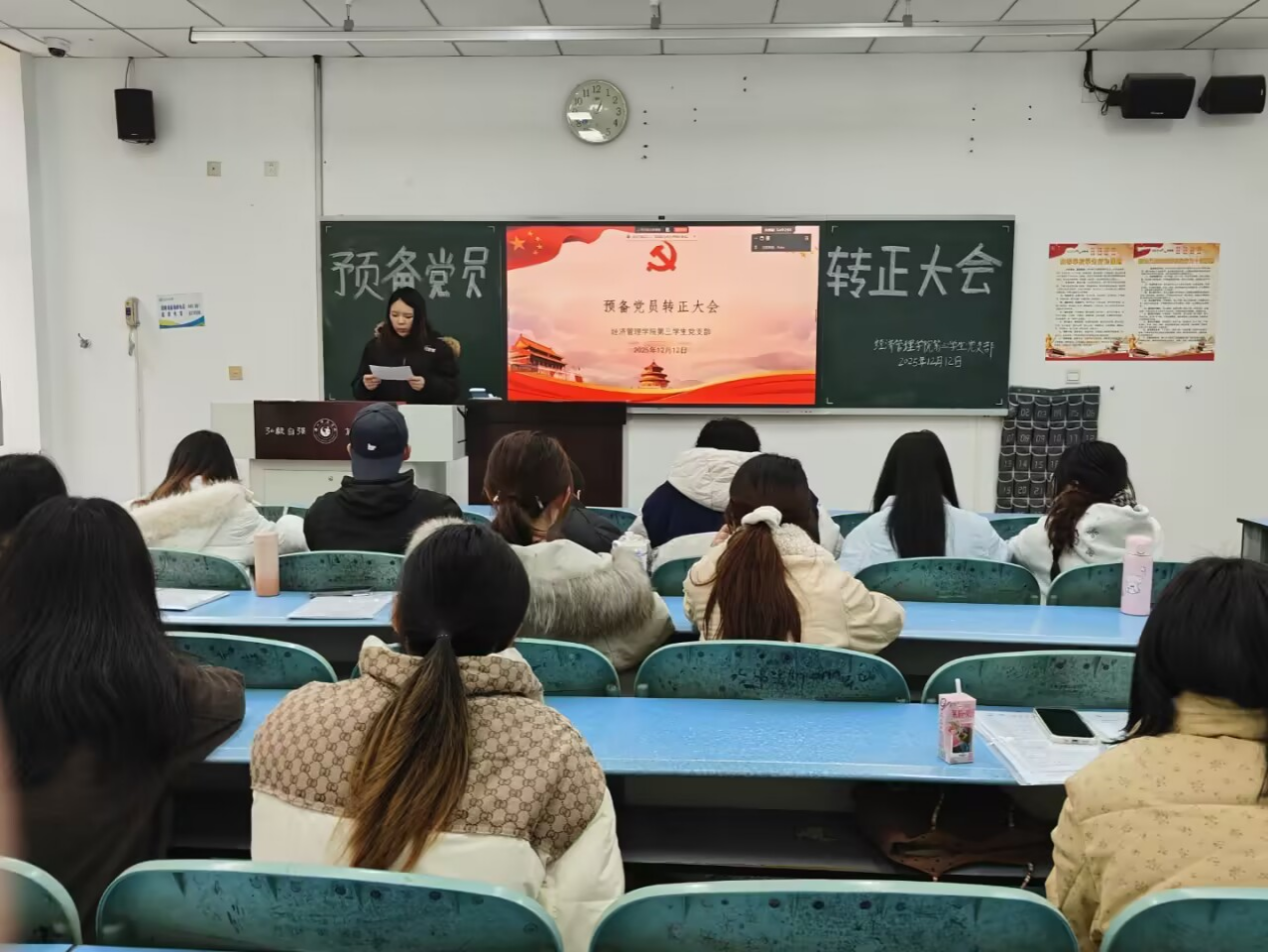 本网讯(图、文/彭景)12月12日,经济管理学院三个学生党支部分别在行知楼109、414、124教室同步召开预备党员转正大会,审议2025年下半年预备党员转正事宜。相关党支部全体党员参加会议。