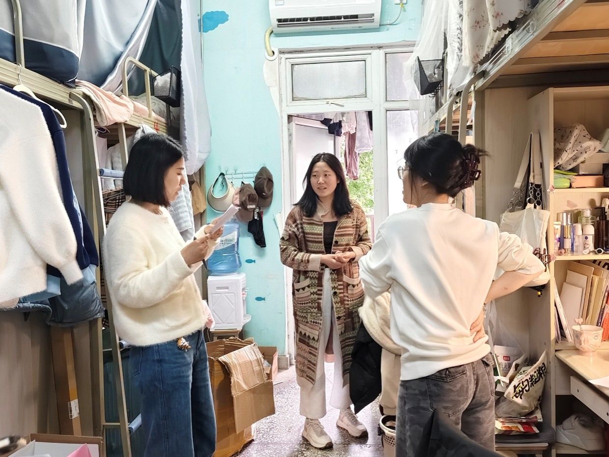 本网讯(文/牛思婷 图/陈聪)4月1日,经济管理学院开展2026年第一季度校内学生寝室走访检查工作,学院党委副书记丁敏娜带队,学工办主任王东健、辅导员老师陈聪、张金秋、郭旭及学生干部组成5个走访小组,对校内学生寝室进行全面走访调查。