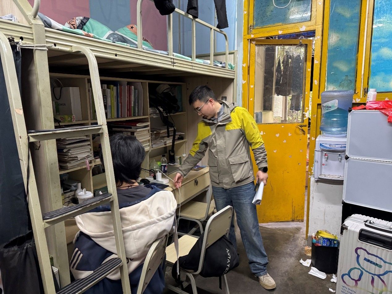 走访期间,各小组严格按照工作安排到岗就位,重点排查消防、用电、财产及寝室周边环境等安全隐患,规范完成信息登记、问题记录与情况留存,及时告知学生潜在的安全隐患,并督促相关人员限期整改。同时,走访小组深入了解学生学习、生活情况及实际需求,开展针对性思想引导与日常教育,结合走访实际开展安全警示教育与风险提示,切实提升学生安全防范意识。