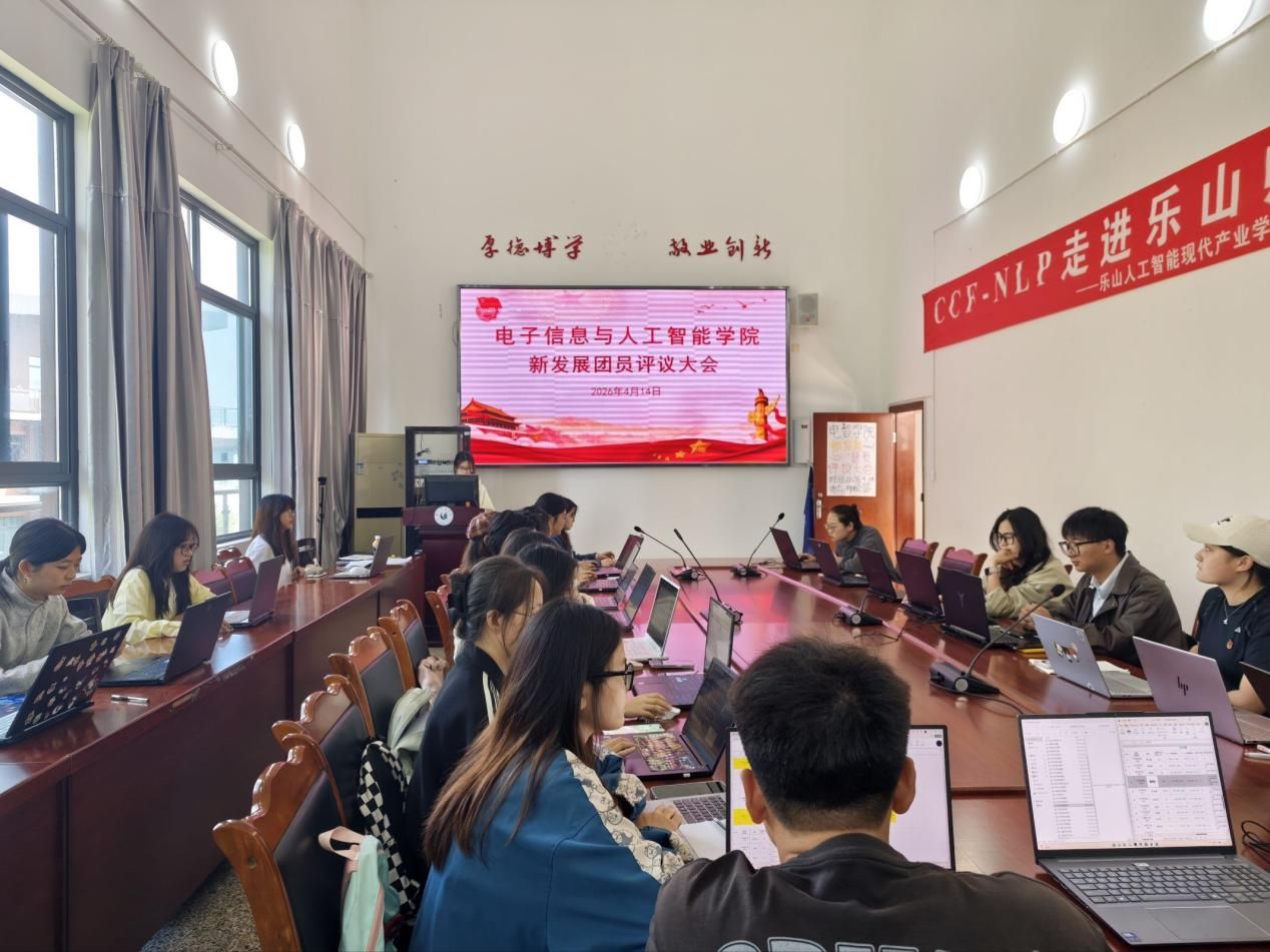 本网讯(文/赖静文 图/谢健军、庾婧)为严把入团关口,团组织注入新鲜血液,4月14日,电子信息与人工智能学院在特教C501召开2026年上半年新发展团员评议会。会议由AI引航辅导员工作室与分团委组织部联合组织,分团委书记强光平,辅导员肖苗、狄红霞和徐星悦,分团委学生干部及各班级团支书与会,共同推进团员发展工作。