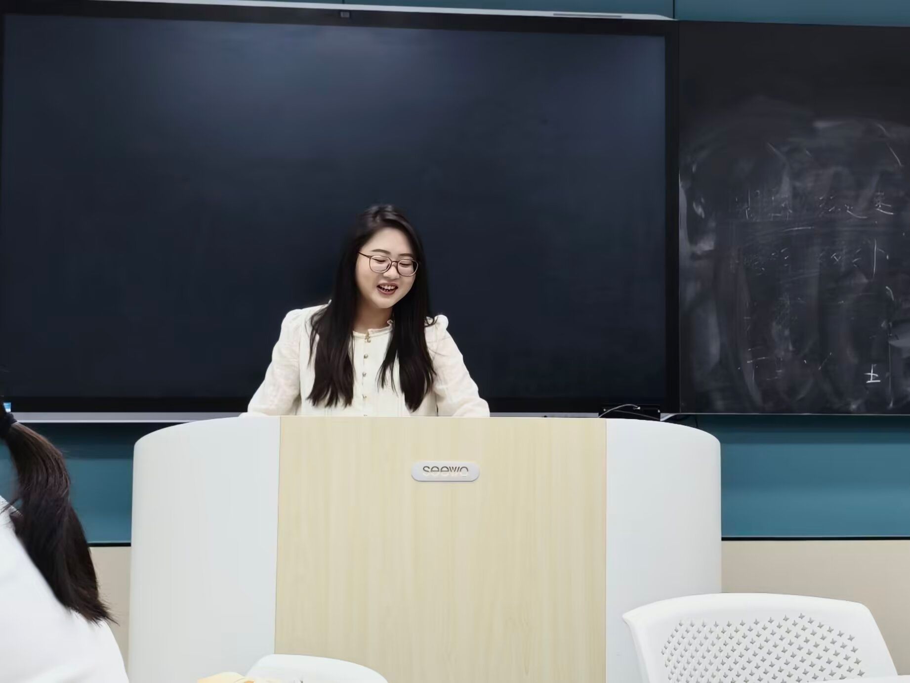 讲座现场,张榕结合自身从校园走向讲台的成长经历,围绕“以正确心态面对求职就业”主题,分享了求职心理调适、职业选择与岗位适应等内容。她以乐山外国语学校教学实践为例,讲述初入职场的真实体验与成长收获,鼓励同学们在面对就业压力时保持从容、理性定位、脚踏实地。整场讲座氛围轻松、内容务实,同学们认真聆听、积极互动,展现出马院学子关注现实、主动成长的良好风貌。